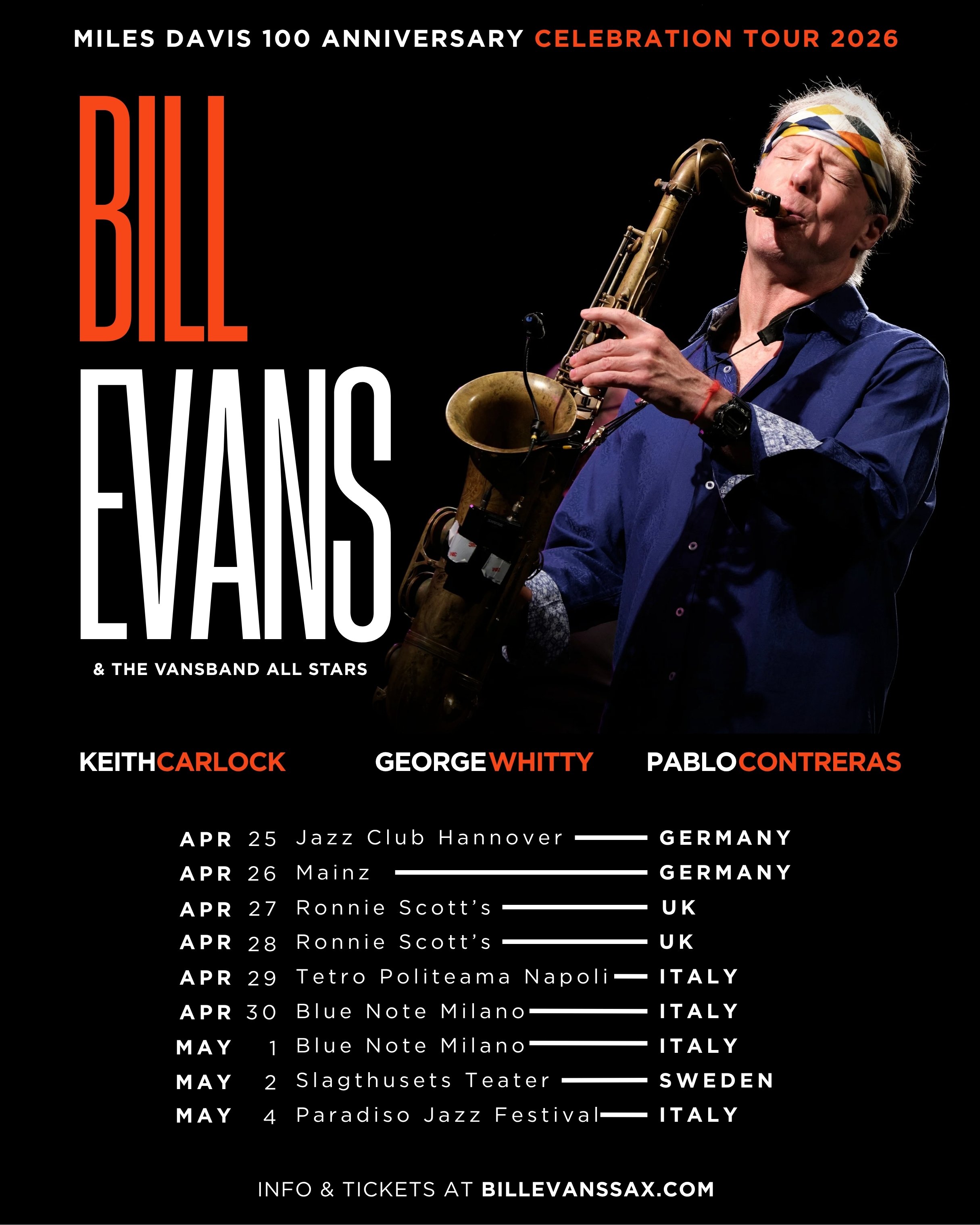 BILL EVANS AND THE VANSBAND ALLSTAR MARCH TOUR 2025. DATES ON THE TOUR PAGE OF THIS WEB SITE.